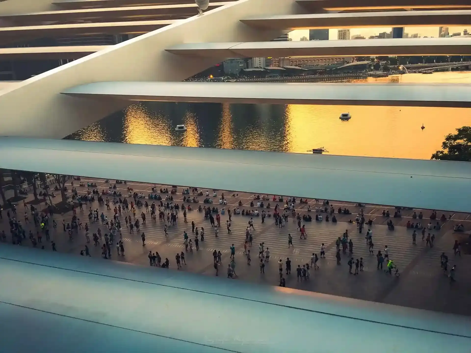 - ✔︎ Uzun Pozlama ile Hareketli Işıklar: Şehrin içinden geçen su yollarındaki teknelerin veya Helix Bridge üzerindeki yaya trafiğinin yarattığı hareketliliği, uzun pozlama ile birer ışık izine dönüştürerek statik mimariye dinamizm katıyorum.